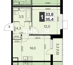 1-комнатная квартира, 33.8 м², этаж 12/23