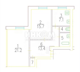 2-комнатная квартира, 64.5 м², этаж 2/5