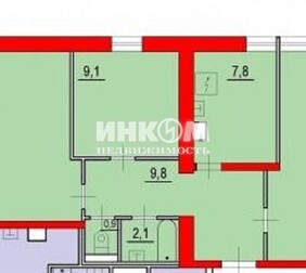 1-комнатная квартира, 32.1 м², этаж 3/9