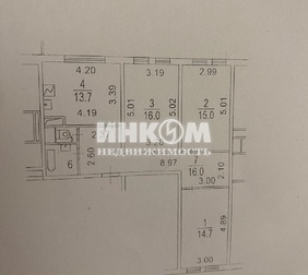 Квартира с тремя раздельными комнатами и большой кухней ( 16/15...