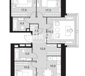 4-комнатная квартира, 98.8 м², этаж 6/8