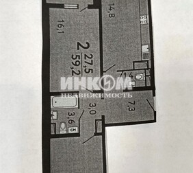 2-комнатная квартира, 60.7 м², этаж 6/12