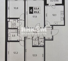 4-комнатная квартира, 89.6 м², этаж 3/23
