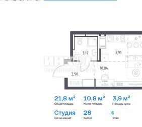 Студия комфорт-класса с полной отделкой (ламинат, плитка, обои, натяжной потолок), площадь 21,82 кв.м., корпус 28, 6 этаж, в ЖК Большое Путилково Сдача II квартал 2026 г. Пл...