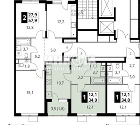 2-комнатная квартира, 55.49 м², этаж 11/12