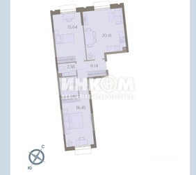2-комнатная квартира, 56.7 м², этаж 15/16