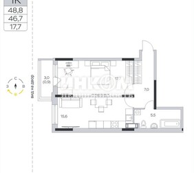 1-комнатная квартира, 46.9 м², этаж 8/9