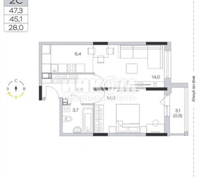 Продается 1-комнатная квартира №453, 45,1кв.м. в современном жилом комплексе комфорт-кл...