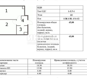 1-комнатная квартира, 37.1 м², этаж 15/16