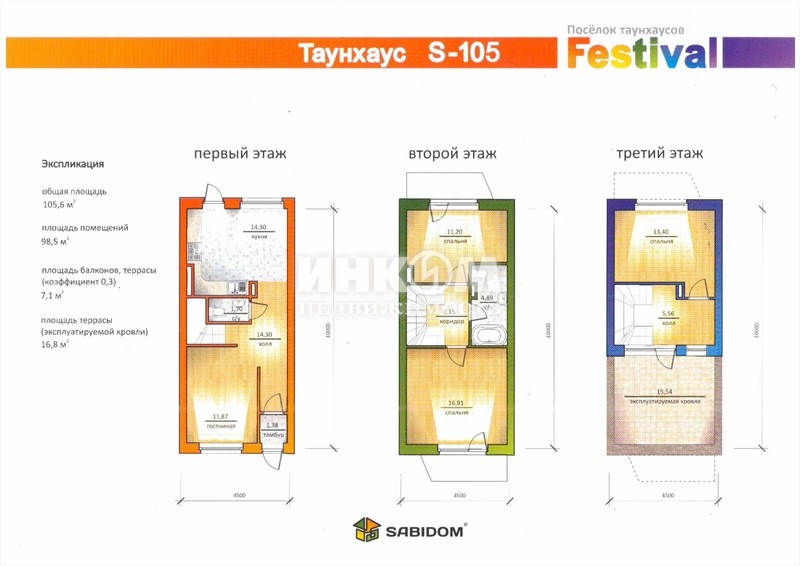 Номер лота: нп-0024581. Торцевой таунхаус общей площадью 120,9 кв.м. очень удачно расположен в котеджном поселке Фестиваль. Без отделки, 3 этажа, высокие потолки, 2 балкона, терраса на эксплуатируемой кровле, индивидуальное отопление. Договор с газовой службой заключен, оборудование получено. Удобное транспортное сообщение до 3 веток метро. Один взрослый собственник, свободная продажа, быстрый выход на сделку.
